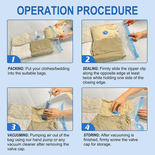 Fygrip 16 Pack Vacuum Storage Bags with Hand Pump, 4 Jumbo + 4 Large + 4 Medium + 4 Small Plastic Packaging Bags, 80% Space Saver Vacuum Seal Bags for Clothing, Travel Lugggage, Blankets, Comforters