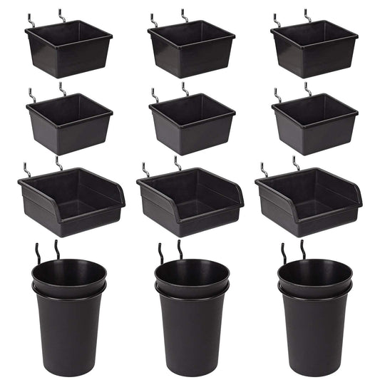 G.CORE 12 Pack Pegboard Bins PegBoard Cups with Hooks & Loops, Peg Board Hooks Assortment Organizer Accessory, Various Tools Storage Arrange System Kit for Garage Craft Workshop Workbench Hobby Office