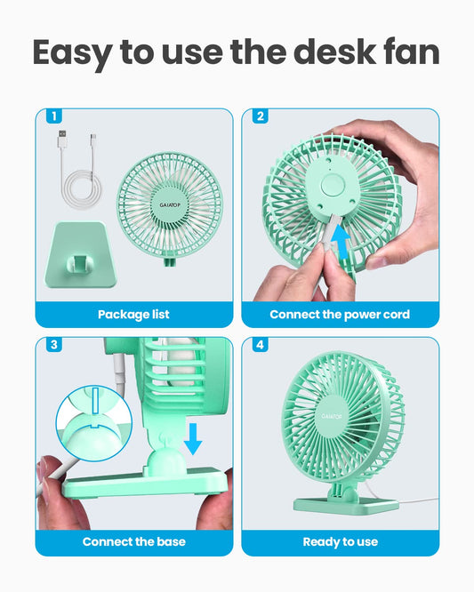 Gaiatop USB Desk Fan, Small But Powerful, Personal Portable Quiet 3 Speeds, Adjustable Mini Table Desktop fan for Cooling Home Office Car Summer Travel Gifts Green