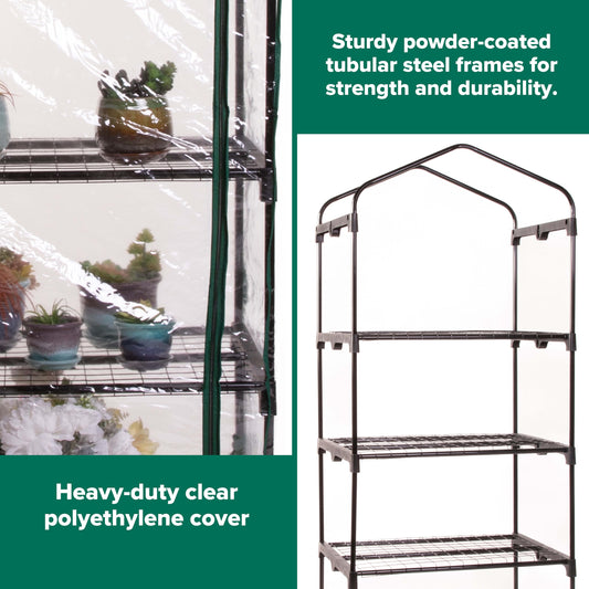 Gardman R687 4-Tier Mini Greenhouse, 27" Long x 18" Wide x 63" High Black