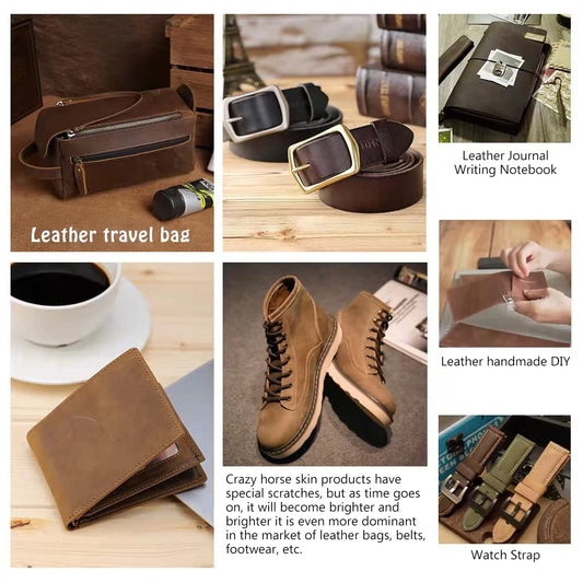 Genuine Leather Tooling Sheets 1.8-2.0MM Thick Full Grain Oil Tan Crazy Horse Cowhide Leather Sheets for Crafts Tooling Sewing Wallet Earring Hobby (Brown, 8"x12")