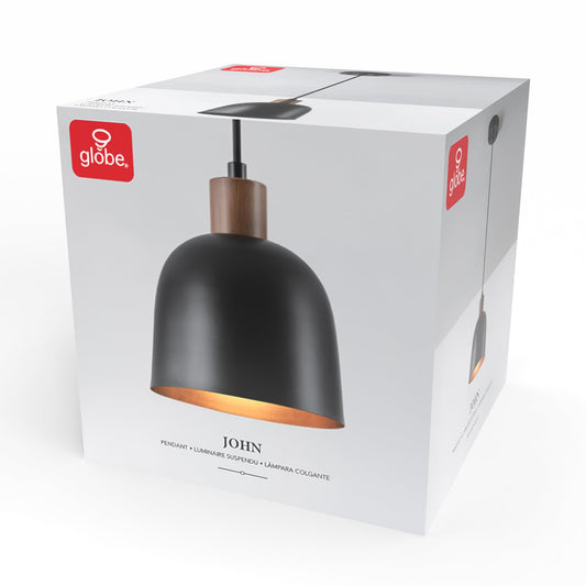 GLOBE Electric 67000193 1-Light Pendant Lighting, Matte Black, Wood-Toned Accent on Socket, 5ft Black Fabric Cord, Home Improvement, Kitchen, Living Room, Hanging Ceiling Light