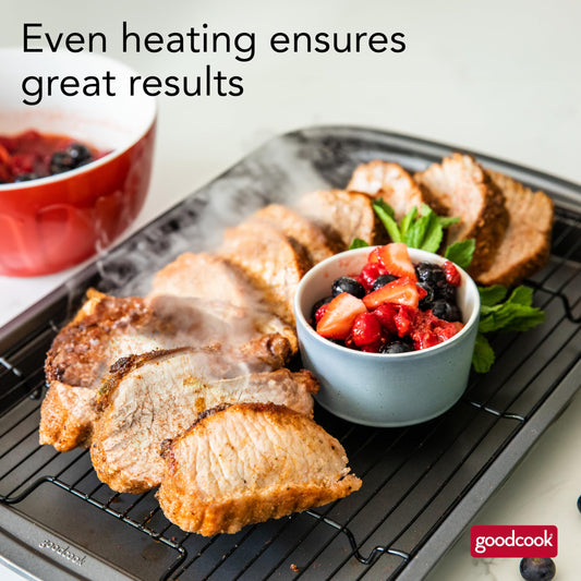 GoodCook 15” x 10.5” Nonstick Carbon Steel Baking Pan & Raised Wire Rack – Pizza Crisper, Crispy Bacon, Multipurpose Cooking Sheet Pan, Cooling Rack, Kitchen Cookware Set, Dishwasher Safe