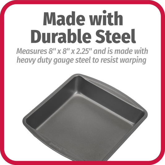 GoodCook Everyday Nonstick Steel Square Pan, 8", Gray