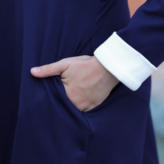 GORLYA Girl's Long Sleeve Casual Vintage Peter Pan Collar Fit and Flare Skater Party Dress with Pockets (GOR1006, 7-8Y, Navy)