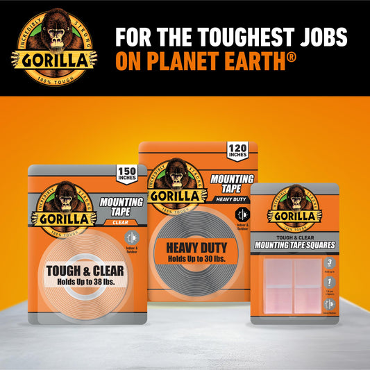 Gorilla Tough & Clear Double Sided Mounting Tape, Clear Tape, 1" x 150" (Pack of 1) - Weatherproof for Indoor or Outdoor