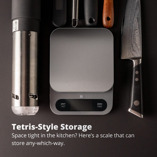 Greater Goods Slim Digital Kitchen Scale – Accurate BPA-Free Food Scale for Cooking, Baking, and Meal Prep, 11lb/5kg with 1 CR2032 Battery Included