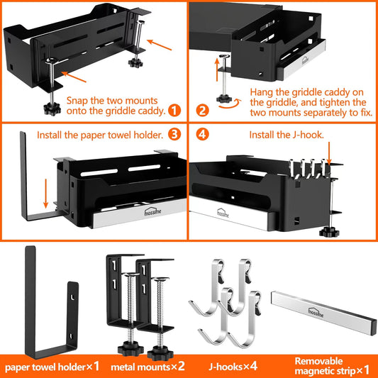 Griddle Caddy for Blackstone 28"/36" Griddles/Prep Cart, Grill Accessories Space Saving for Blackstone BBQ Accessories Storage Box with Magnetic Tool Holder & Paper Towel Holder