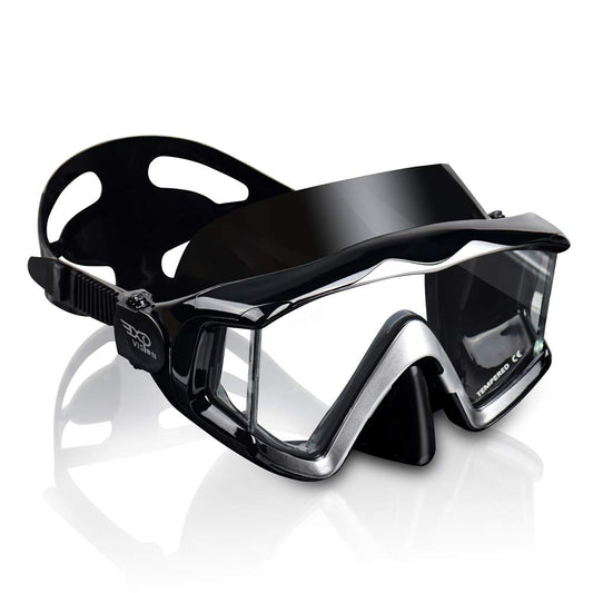 Adult Pano 3 Window Scuba Diving Mask, Tempered Glass Snorkel Mask Anti-Fog Swim Mask No Leakage Swim Goggles with Nose Cover Snorkeling Gear for Snorkeling, Freediving, Swimming (Black)