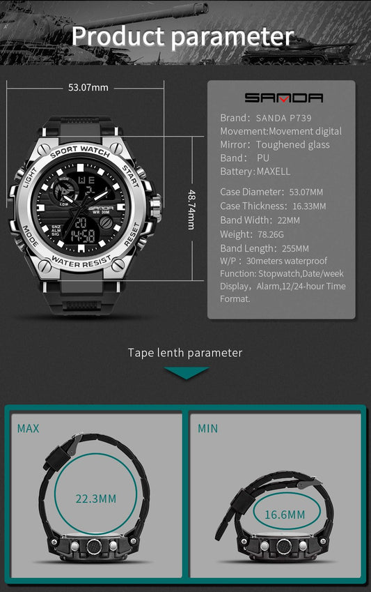 AIMES Men's Watches Sports Outdoor Waterproof Military Watch Date Multi Function Tactics LED Alarm Stopwatch