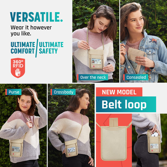 Alpha Keeper Neck Wallet, Travel Pouch For Passport Holder And Documents, RFID Blocking, Beige, Unisex Adult, Travelers, Adults