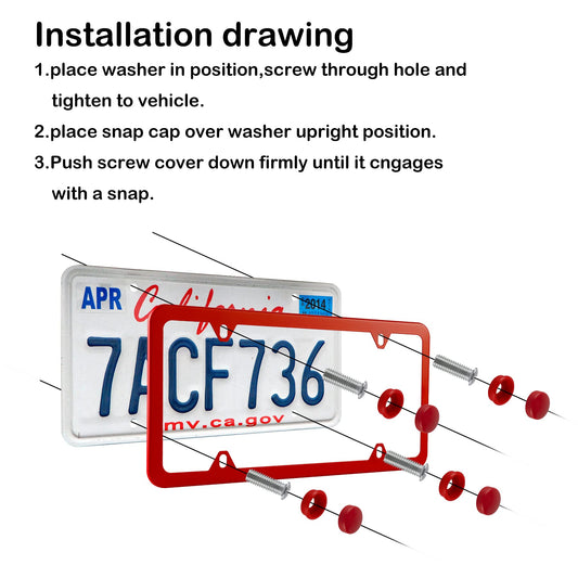 alpmosn 2PCS Stainless Steel License Plate Frames, 4 Holes Car Licence Plate Covers with Screws Washers and Caps, Car Exterior Accessories, License Plate Holder for US Vehicles (Red)