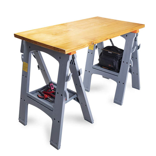 Amazon Basics Rectangular Folding Sawhorse - Set of 2, 900 Pound Capacity, Orange and Grey