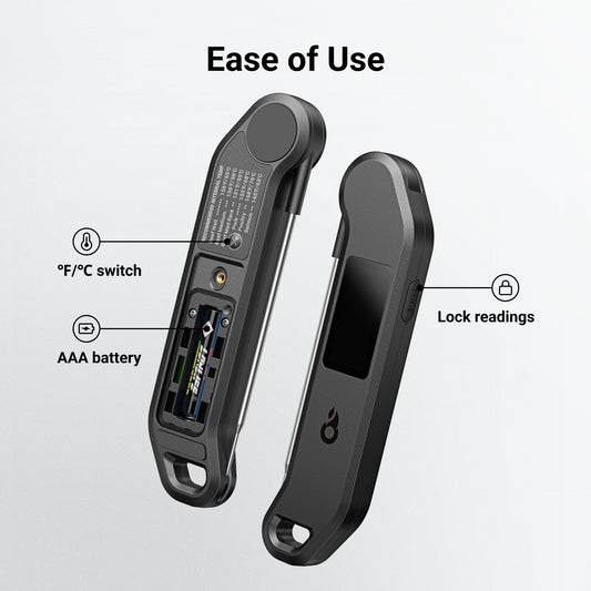 Professional Digital Meat Thermometer, 1 Sec Instant Read, ±0.5℉ Accuracy NIST&NSF Certified Food Thermometer, Auto-Rotate Bright LED Screen, 100% Waterproof Cooking Thermometer for Grill BBQ, Black