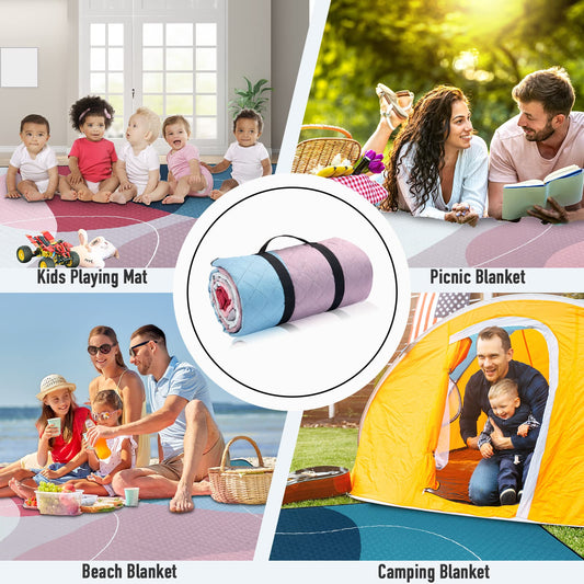 PY SUPER MODE Picnic Blankets Extra Large, Waterproof Foldable Outdoor Beach Blanket Oversized 83x79” Sandproof, 3-Layer Picnic Mat for Camping, Hiking, Travel, Park, Concerts(Abstract Pink)