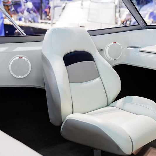 Pyle 6.5 Inch Marine Speakers (Pair) - 2-way IP-X4 Waterproof and Weather Resistant Outdoor Audio Dual Stereo Sound System with 600 Watt Power and Low Profile Design - Pyle PLMR652W (White)