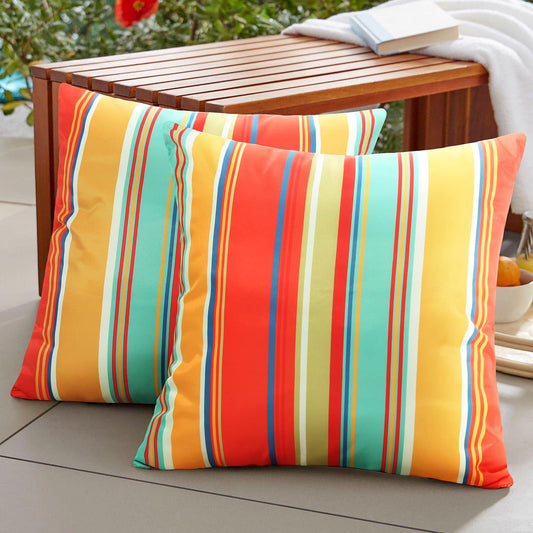 Pyonic Outdoor Pillow Covers Waterproof Throw Pillow Covers Set of 2,Decorative Square Beach Pillowcase Patio Pillows for Porch Furniture Tent Garden Couch,Color Stripe(Red) 20x20Inches