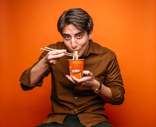 RAMEN EXPRESS Hot & Spicy Chicken Flavor Ramen Cup Noodle, 2.25 Oz Each (Pack Of 12) | Animal-free Ramen Noodles | All Plant-based | Made in U.S. with finest American flour