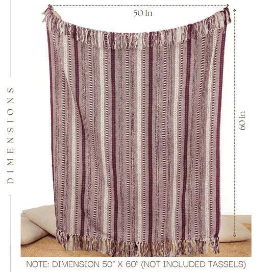 RAJRANG Cotton Braided Striped Throw Blanket with Boho Tassels - 50x60 inches Soft Farmhouse Woven Knitted Blankets - Pomegranate