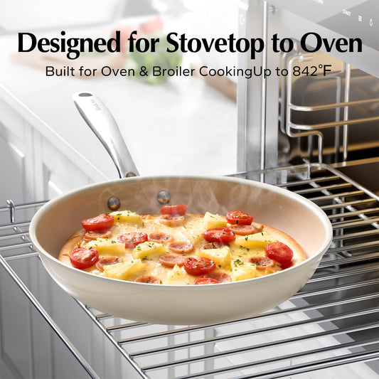 Redchef Nonstick Frying Pans Set, Ceramic Pan Skillet, Non Toxic Pans for Cooking, 8" 9.5" 11" Ceramic Frying Pan Set PFAS & PTFE & PFOA Free with Stay Cool Handle, Dishwasher & Oven Safe, Beige White