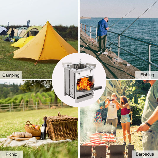 REDCAMP Wood Burning Folding Camp Stove Stainless Steel Grid, Portable Collapsible Backpacking Stove Survival Rocket Stove for Hiking Outdoor Tent Camping Picnic BBQ, Samll