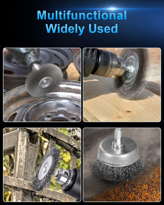 Rocaris 6 Pack Carbon Steel Wire Wheel and Pen Brush Set with 1/4-Inch Hex Shank for Rust Removal, Corrosion and Scrub Surfaces