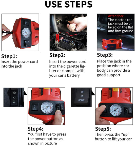 ROGTZ Electric Hydraulic Car Jack Kit 5 Ton 12V Portable Lift Range 17.7 Inch with Impact Wrench and Tire Inflator Pump for SUV Sedan Truck Car Repair Floor Jack for Vehicle Tire Change with LED Light