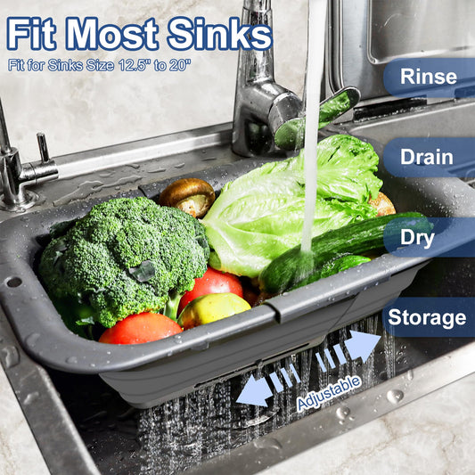ROTTOGOON 7Qt Collapsible Colander Strainer, Expandable Over the Sink Colander, Adjustable Silicone Kitchen Sink Strainer, Foldable Large Colanders Basket to Wash Vegetable, Fruit, 15" to 19.8"