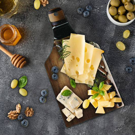 Ambesonne Wine Cutting Board, Glasses of Red and White Wine Served with Grapes French Gourmet Tasting, Decorative Tempered Glass Cutting and Serving Board, Wine Bottle Shape, Brown Ruby