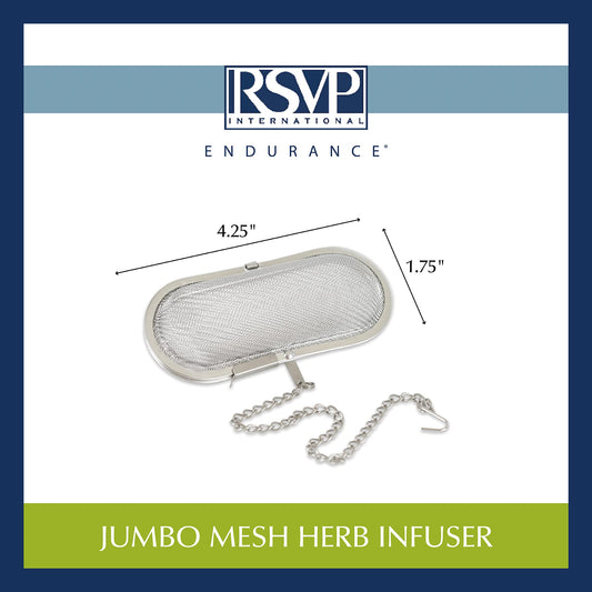 RSVP International Endurance Kitchen Collection Stainless Steel Mesh Floating Spice Infuser for Soups, Stews or Large Tea Pot, Jumbo Oval, 4.25x1.75"