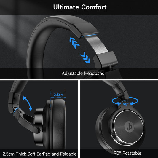 Rumoon Wired Over Ear Headphones, Studio Monitor & Mixing DJ Headphones with 50mm Neodymium Drivers and 1/4 to 3.5mm Jack for Guitar AMP Podcast Piano Keyboard (Black)