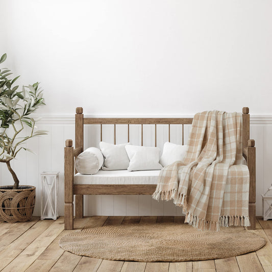 Americanflat 50x60 Throw Blanket - Soft and Breathable Cotton Throw Blanket for Couch, Bed, Chair - Decorative Blankets Perfect for Home, Office, or Outdoor Use - Ecru Camel Plaid Design