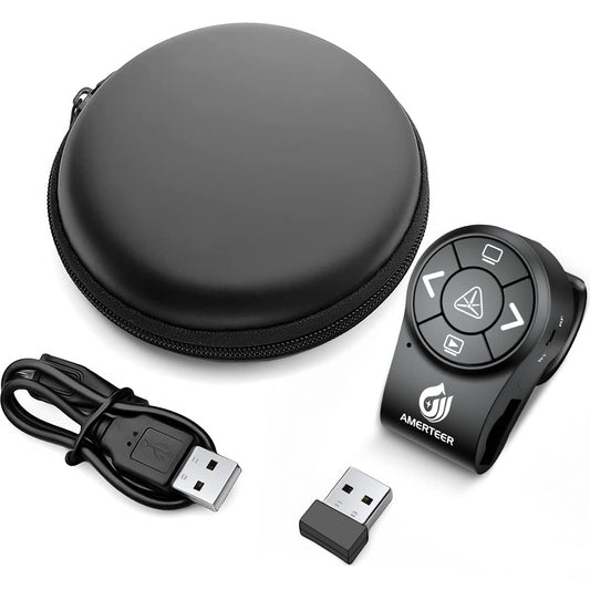 AMERTEER Bluetooth Wireless Presentation clicker for PowerPoint presentations, RF 2.4GHz Finger Ring Remote, PPT Slides Rechargeable