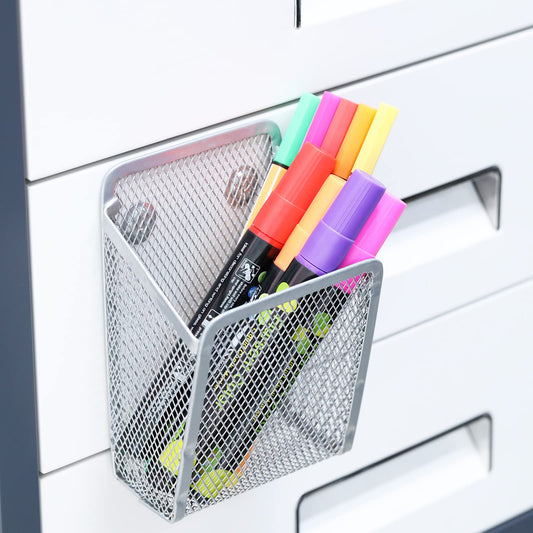 Sanpaint Magnetic Pencil Holder,Mesh Stainless Steel Pen Basket, Metal Writing Utensil Storage Organizer for Whiteboard,Blackboard,Kitchen, Locker, Home, or Office