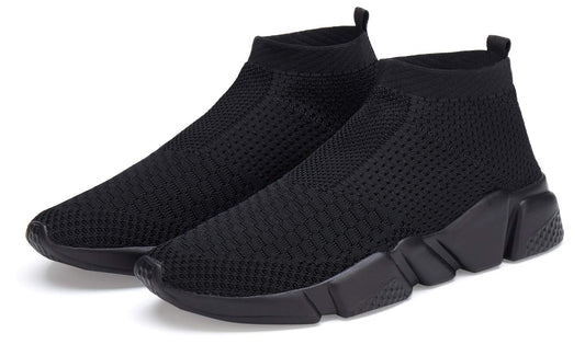 Santiro Sneakers for Men Knit Breathable Sock Slip On Shoes Lightweight Gym Running Sneakers Casual Tennis Walking Shoes All Black 9.5 US