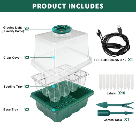 Seed Starter Tray, 2 Pcs Plant Propagation Station with Grow Light,Seedling Starter Trays with Timing Controller,Mini Greenhouse Kit with Humidity Domes and Base,Plant Tray for Seeds Growing Starting