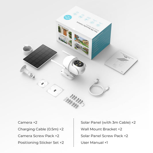 SEHMUA 2K Solar Security Cameras Wireless Outdoor, Low-Light Color Night Vision, 360° Live View, 2-Way Talk, PIR Motion Sensor, 2.4GHz Wi-Fi, White, 2 Pack