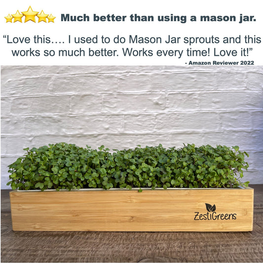 Self-Watering Microgreens Growing Kit – Easiest Way to Grow Fresh Microgreens at Home. Includes Reusable Tray, Organic Seeds, Grow Mats & Stylish Bamboo Frame – No Soil, No Mess (Salad & Broccoli)