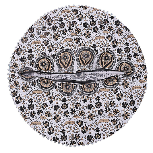 Shubhlaxmifashion Mandala Floor Pillow Cushion Seating Throw Cover Hippie Decorative Bohemian Ottoman Poufs, Pom Pom Pillow Cases,Boho Indian (32 Inches, Gold Black)