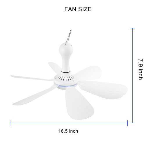 Silent USB Powered Ceiling Fan with Remote Control Timing 4 Speed, Quiet Small DC Plug in Ceiling Fan Hanging Fan for Camping Bed RV Tent Canopy Room