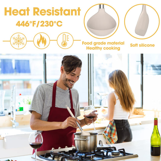 Silicone Cooking Utensil Set, Fungun Non-stick Kitchen Utensil 24 Pcs Cooking Utensils Set, Heat Resistant Cookware, Silicone Kitchen Tools Gift with Stainless Steel Handle (Khaki-24pcs) …