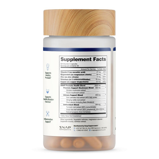 Snap Supplements Prostate Health Support Supplement, Saw Palmetto for Men Plus Stinging Nettle Root, Magnesium Citrate, Zinc and Plant Sterols, Supports Male Urinary Tract Health, 90 Capsules