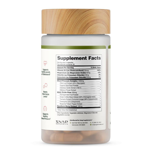Snap Supplements Heart Health Support Supplement with Coq10, Organic Beet Root Powder, Hawthorn Berry, Turmeric and Odorless Garlic, Supports Nitric Oxide Level, Circulation and Flow, 90 Capsules