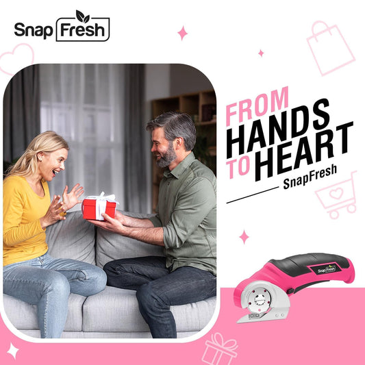 SnapFresh Cordless Electric Scissors- 4V Mini Cardboard Cutter for Boxes, Carpet, Paper – Rotary Cutter for DIY Projects, Safety Box Cutter with Battery & Type-C Cable(Hot Pink)