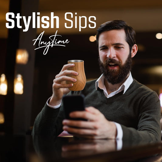 Snute Double-Wall Insulated Whiskey Glass – Stemless Nosing Glass for Bourbon, Scotch & Whisky – Wood Finish – Gift for Men, Dad, Whiskey Lovers (Set of 2)