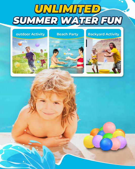 SOPPYCID 12PCS Reusable Water Balloons - Quick Fill Water Balls Toys For Toddler Age 4-8 - Refillable Magnetic Self-Sealing Water Splash Bomb For Summer Party Pool Outdoor Beach Toys for kids Age 8-12