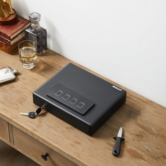 SOULYI Portable Digital Gun Safe For Pistols With Password And Key Access, Pistol Safe With Muting Mode For Truck, Nightstand, Drawer, Cabinet, Bookshelf And Car Travel