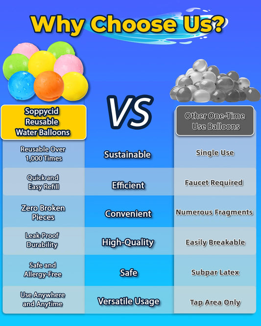 SOPPYCID Magnetic Reusable Water Balloons for Kids, Refillable Water Balls Quick Fill for Pool, Outdoor Games for Beach, Summer Toys for Kids 4-10 (10Pack)