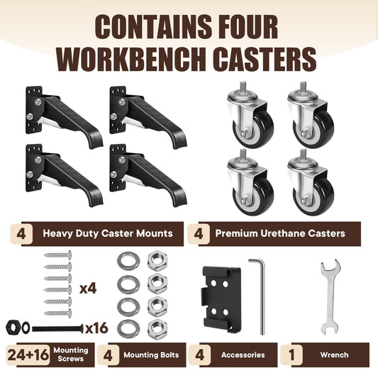 SPACECARE Workbench Casters kit 900Lbs Heavy Duty Quick Release 2 Mounting Options Retractable Workbench Stepdown Caster Wheels Adjustable Polyurethane Durable Steel Construction (Set of 4)