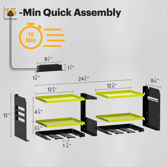 Spampur Power Tool Organizer for Tool Storage, Drill Holder Wall Mount with Charging Station, Tool Holder and Storage Rack for Garage Organization, Heavy Duty Metal Tool Shelf with Battery Holder